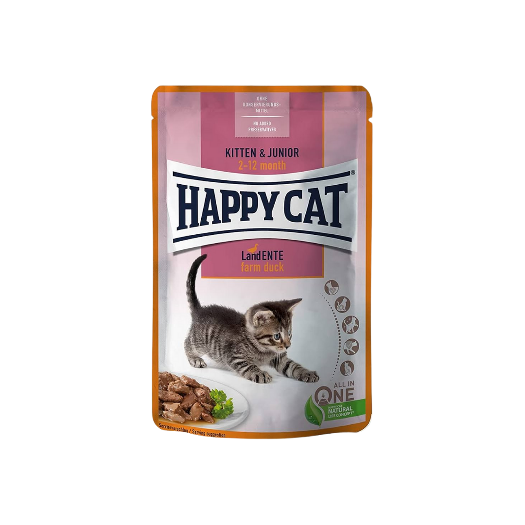طعام رطب للقطط الصغيرة من هابي كات بنكهة البط 85 جرام