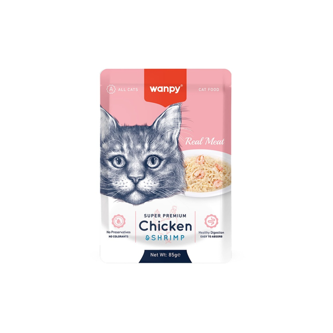 وانبي طعام رطب للقطط بنكهة الدجاج مع الروبيان 85 جرام
